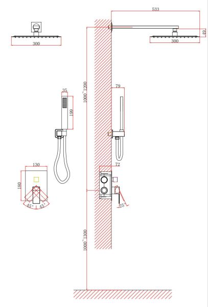 • Размер ручного душа, см: