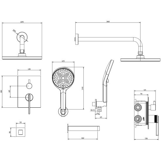 Душевая система DQ для ванны и душа Bonn встраиваемая с изливом графит (DA1705606) купить