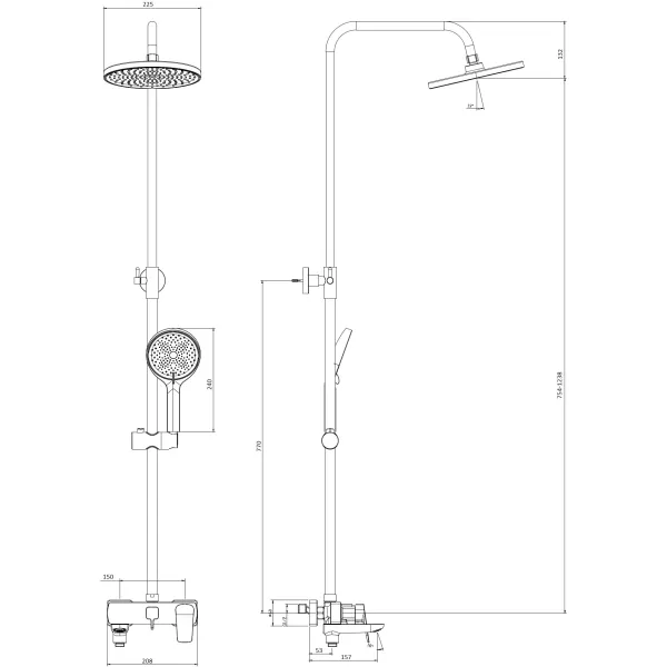 Душевая система DQ Hamburg DA1743701 225 мм, со смесителем, хром