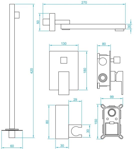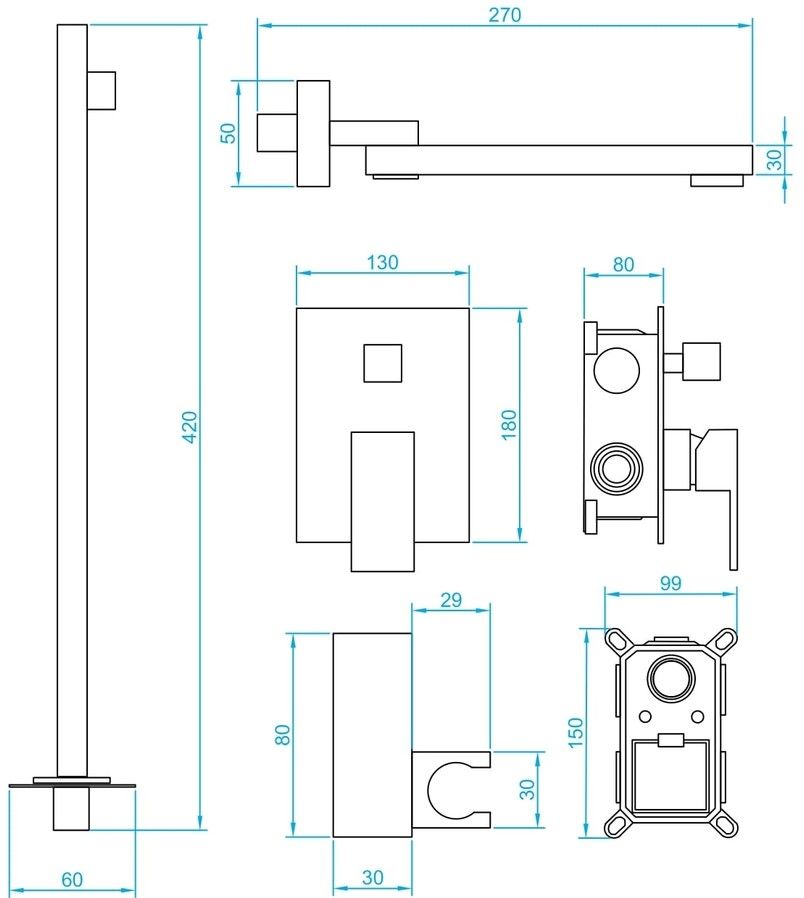 • Головной душ, горизонтальный держатель из нержавеющей стали. Головной душ оснащён шарнирным креплением, что позволяет выбрать необходимый угол направления воды