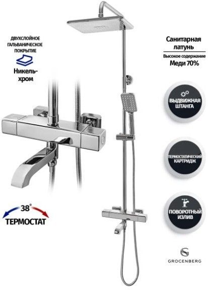 Душевая система с термостатом Grocenberg GB7005 Хром купить