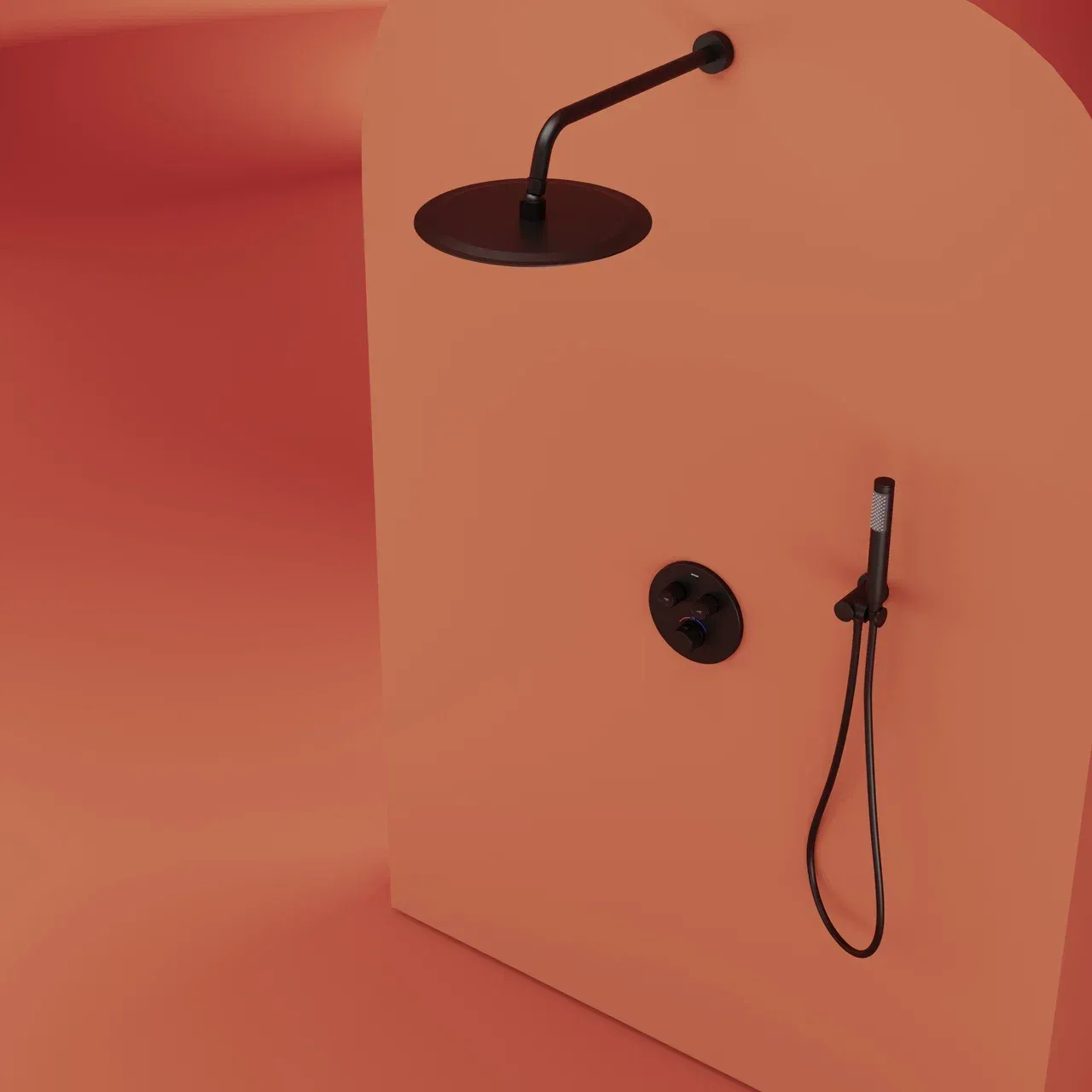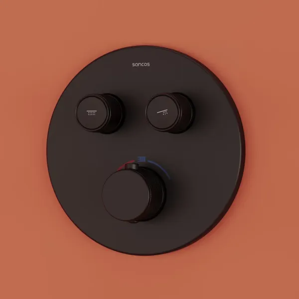 Душевой комплект SANCOS Link встраиваемый, c термостатическим смесителем, верхним, ручным душем и шлангом в комплекте, цвет черный матовый, арт. SC3005MB