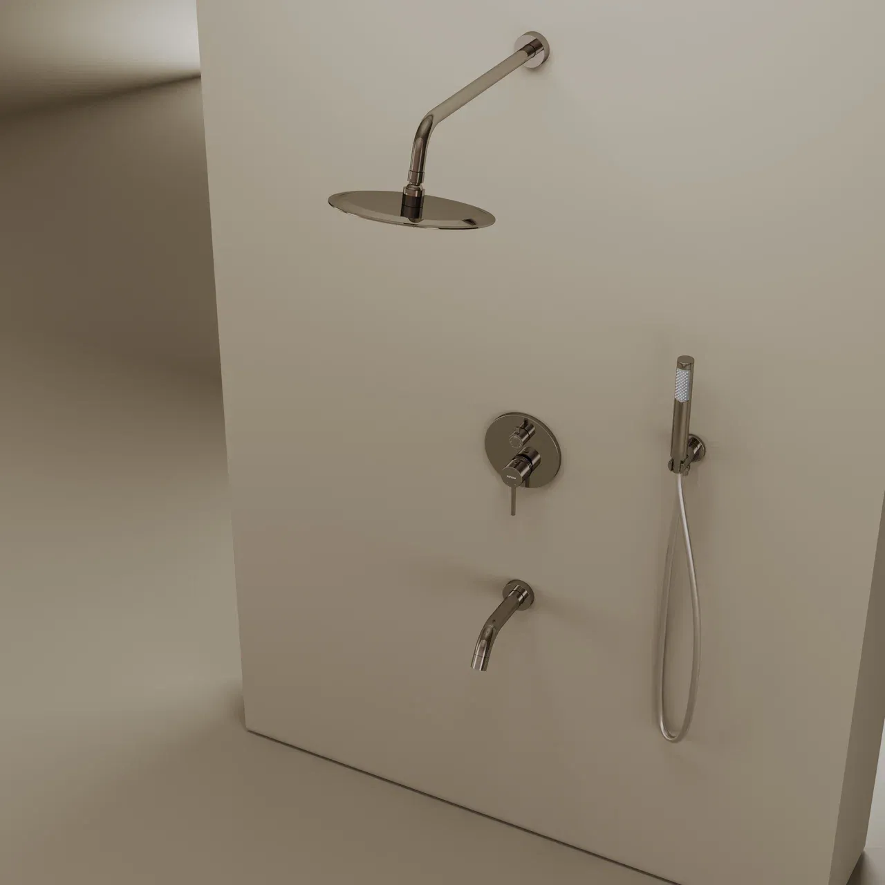 Душевой комплект SANCOS Select встраиваемый для ванны/душа, с внутренней частью, верхним, ручным душем, изливом и шлангом в комплекте, цвет хром, арт. SC3004CH