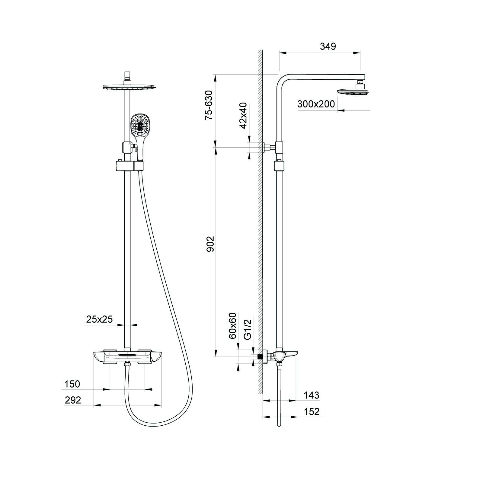 Размер верхнего душа, см:30