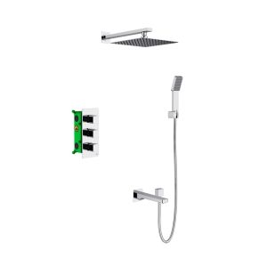 • Душевая система скрытого монтажа, с термостатом с квадратной лейкой (латунь) в стиле модерн