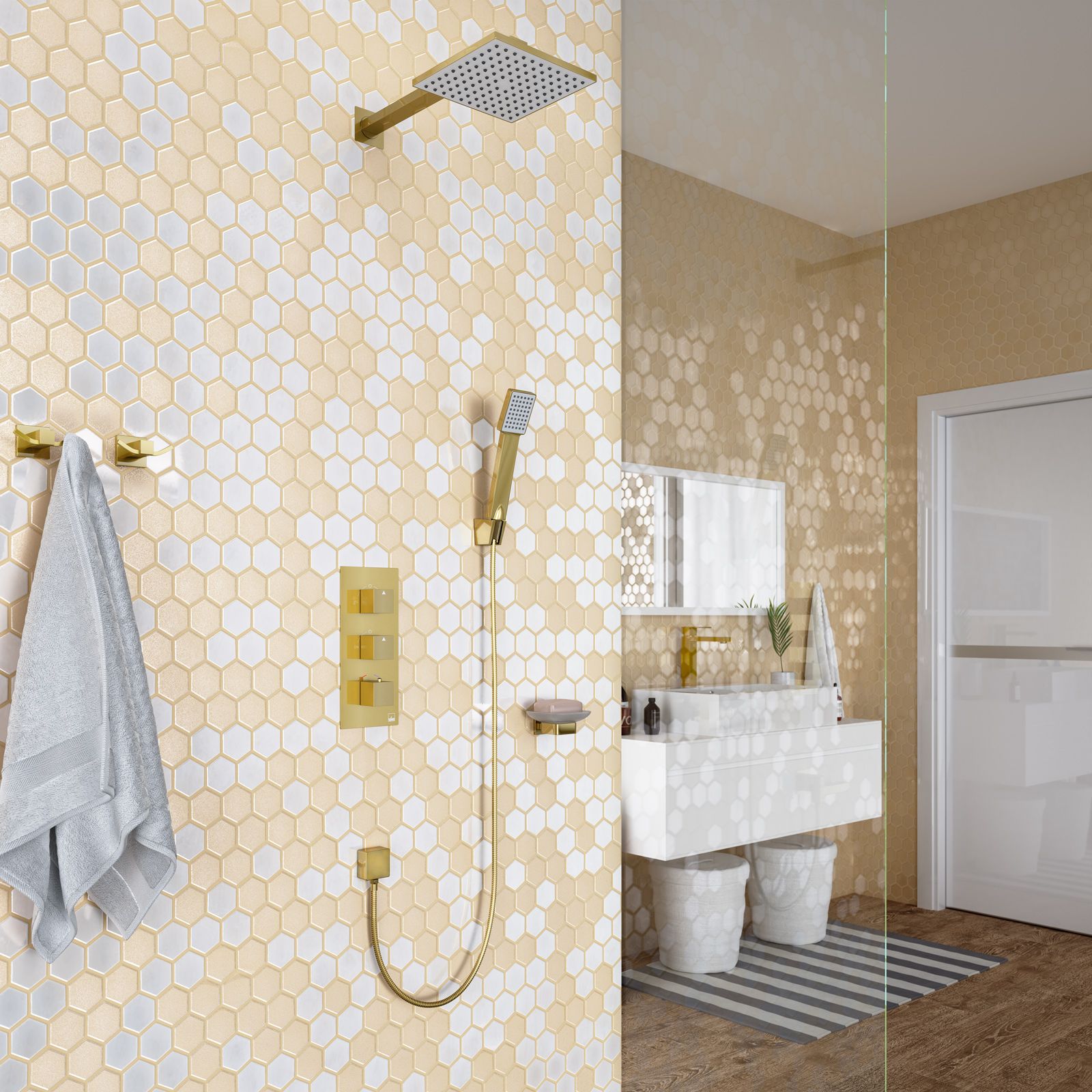 Душевая система Timo Tetra-thermo SX-0179/17SM с термостатом золото матовое