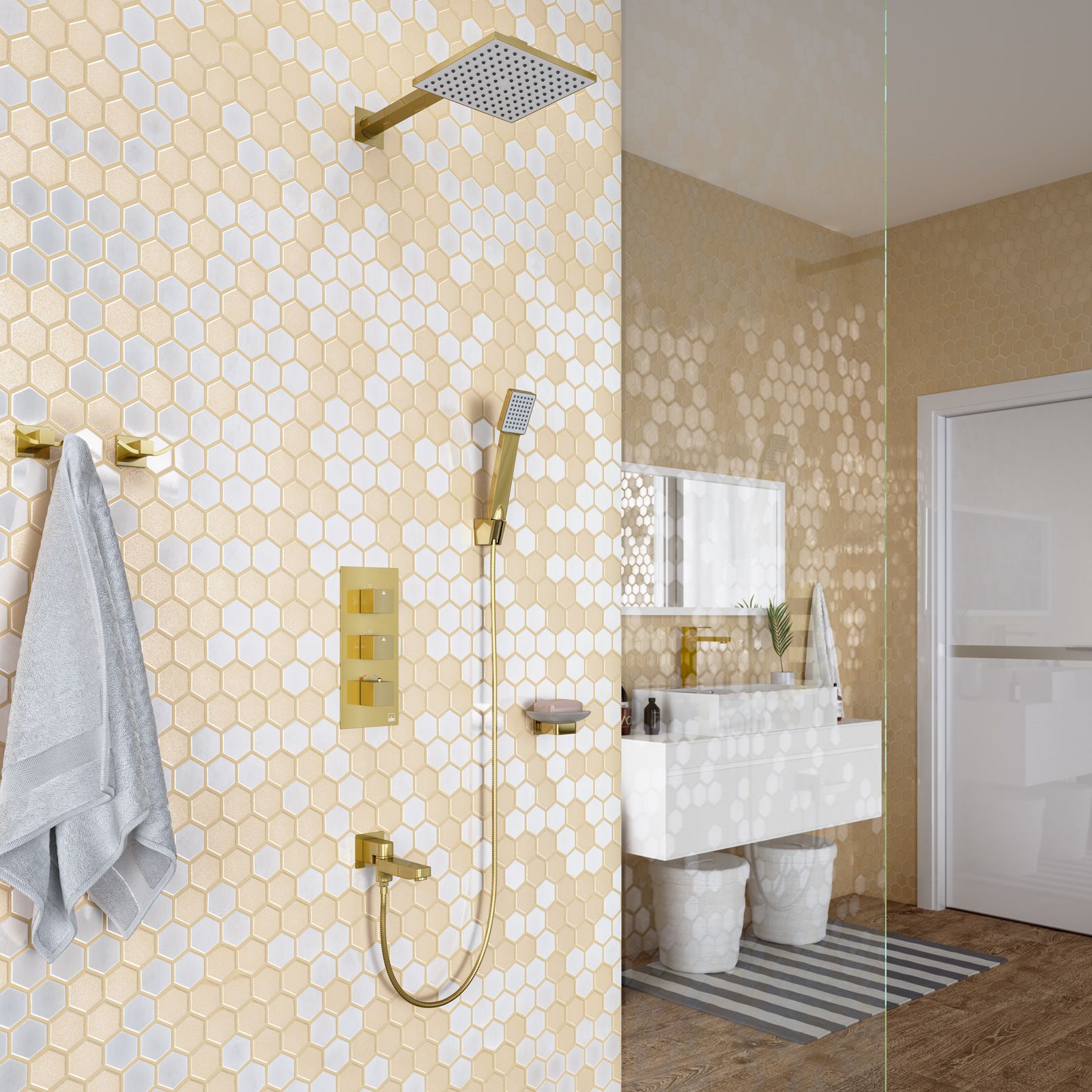 Душевая система Timo Tetra-thermo SX-0199/17SM с термостатом золото матовое