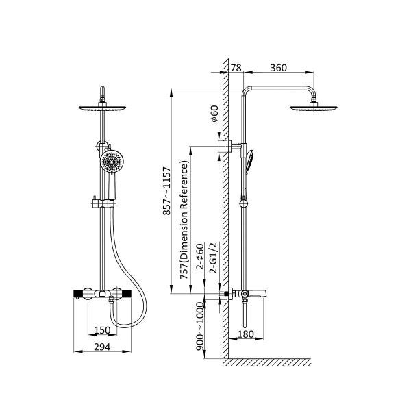 термостатФорма верхнего душа: