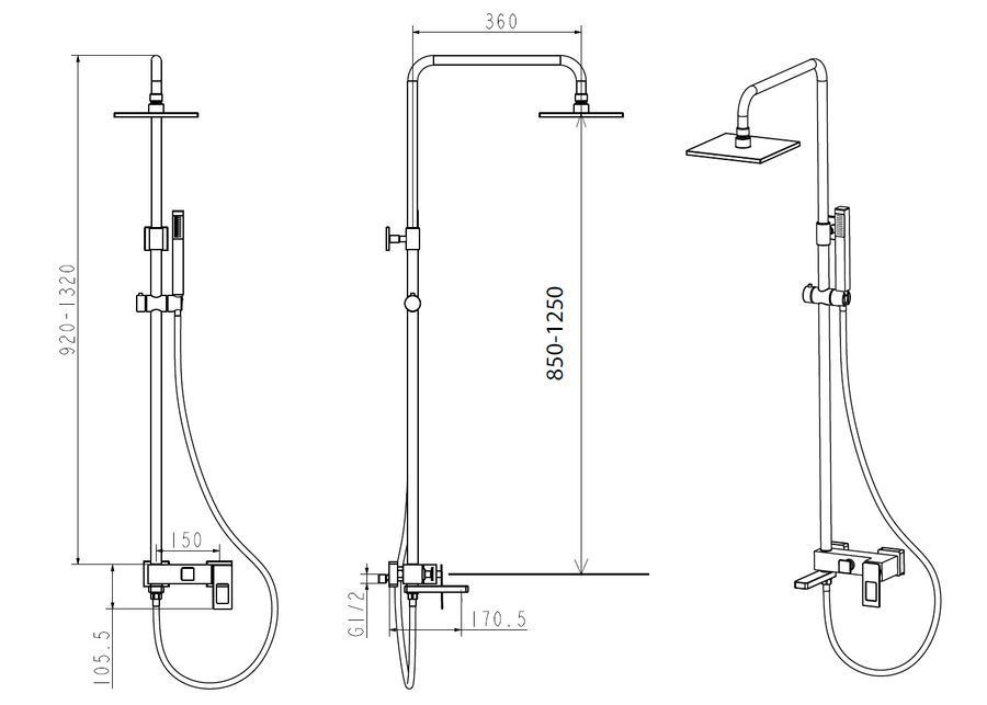 Душевая система Boheme Q, верхний душ, ручной душ, с изливом. Смеситель для ванны и душа Душе... Подробнее