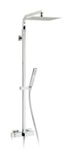 Ультра тонкий дизайн. -Эксклюзивный, экстра-плоский верхний тропический душ D 200х300 mm. Ручной Душ: -Лейка ширина 20 мм высота 55 мм система Декальцинации (легкая очистка известковых отложений) -Экономичный расход воды -Хромированный корпус -Гибкий силиконовый шланг 1.75 м. Штанга: -Душевая штанга из нержавеющей стали с закрепляющимися двухсторонними мыльницами (дополнительная опция) -Регулировка по высоте min 1200, max 2000 mm. -Пристенный вариант установки. - Механический смеситель