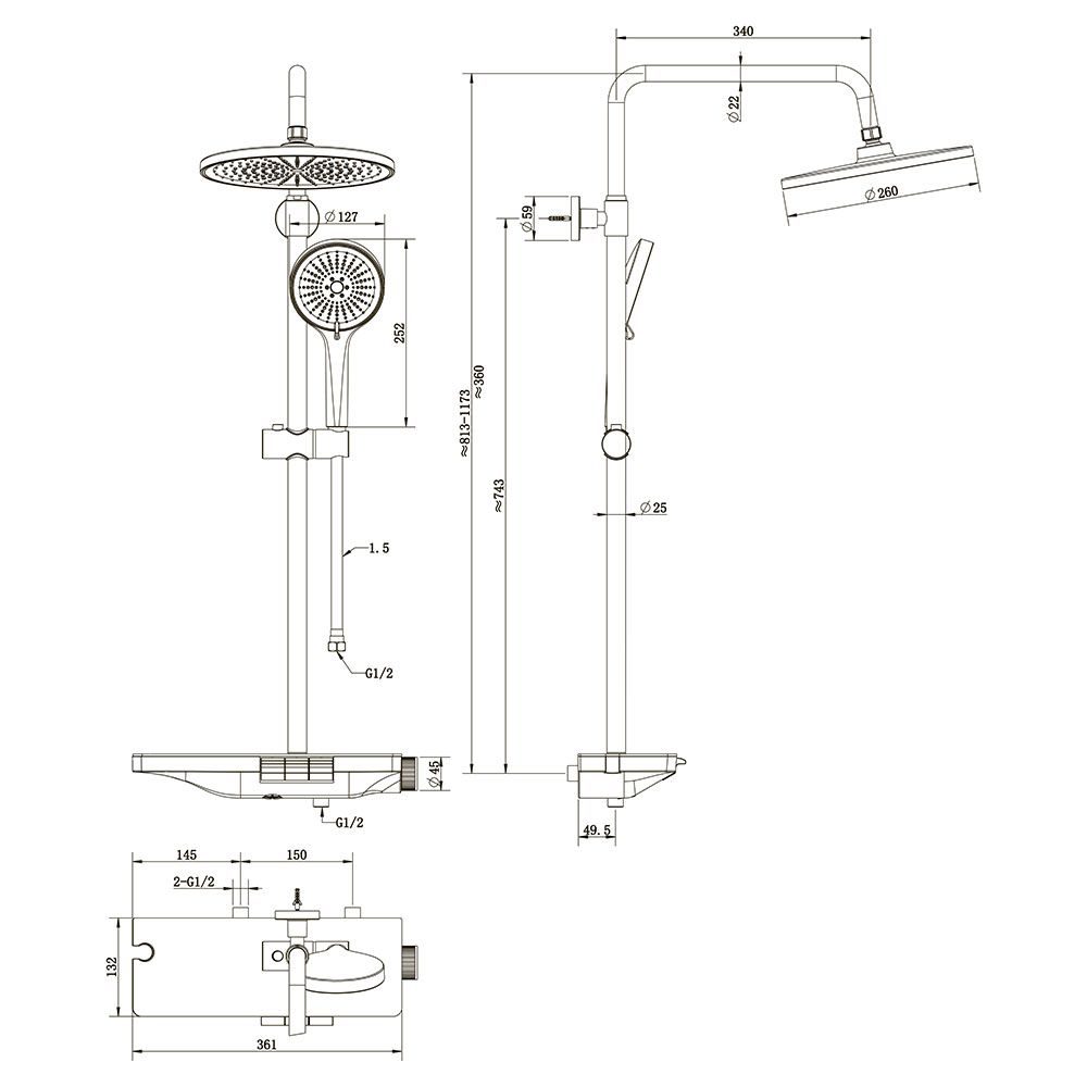 Душевая стойка ENNA, графит брашинг
