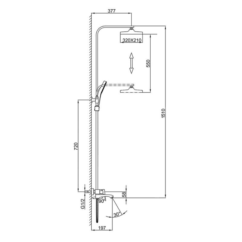 • Размер верхнего душа, см: