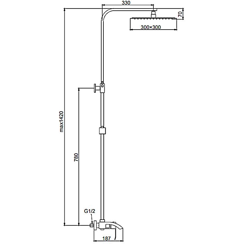 • Размер верхнего душа, см: