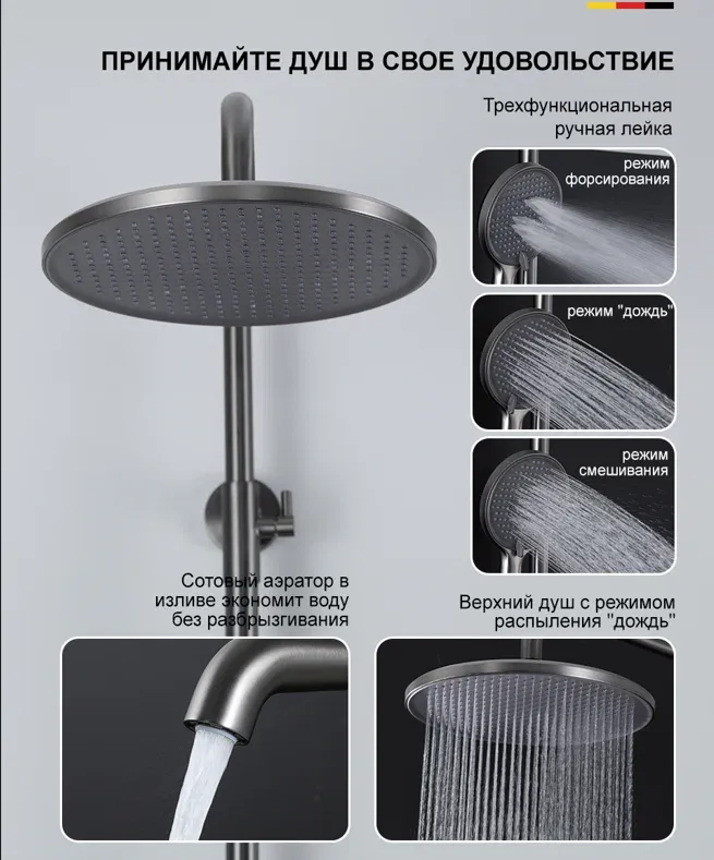 Душевая система с тропическим душем G2406-9 от Gappo - это отличное решение для ванной комнаты, ... Подробнее