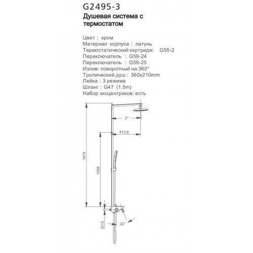 Душевая стойка Gappo G2495-3 с термостатом хром