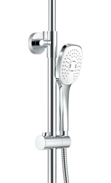 Душевая система Haiba.Изготовлена из высококачественной латуни.Прекрасный тропический душ.Излив для наполнения ванны.Душевая штанга регулируется по высоте от 66,3 см до 122,7 см.