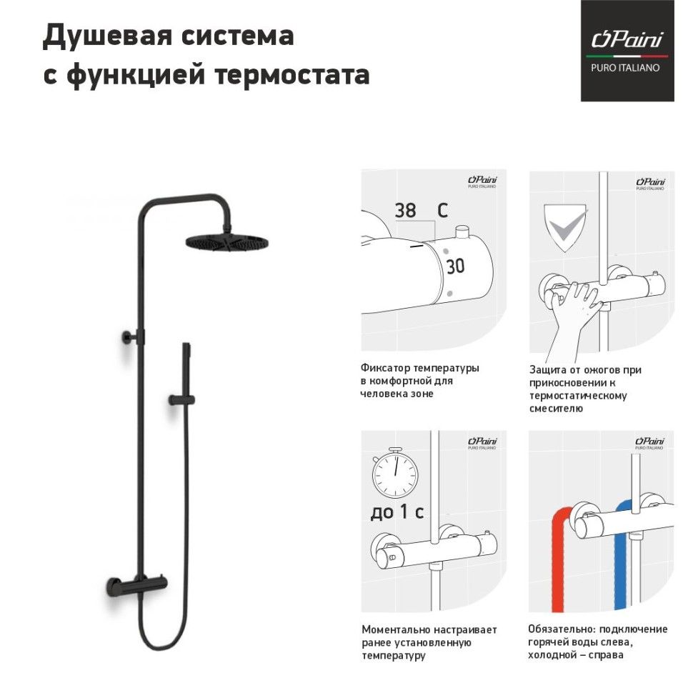 Душевая стойка Paini Cox 78PZ689TH с термостатом чёрный матовый купить