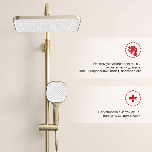 Душевая стойка Raglo R22.26.03 с термостатом золотой сатин