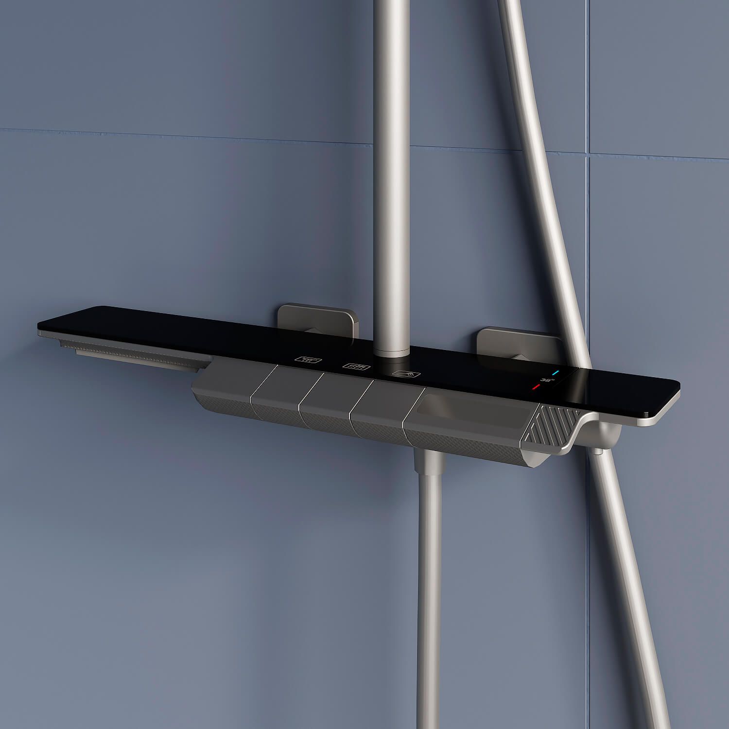 • Вместительная стеклянная полка для душевых принадлежностей;