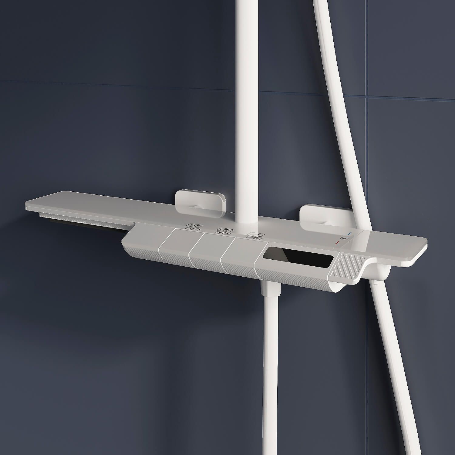 • Вместительная стеклянная полка для душевых принадлежностей;