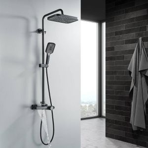 Душевая система с термостатом Rose R1896H-6, черный.Монтаж: настенный.Стилистика дизайна: современный стиль.Управление: термостат.Размер верхнего душа: 31,5x21.Форма верхнего душа: прямоугольная.