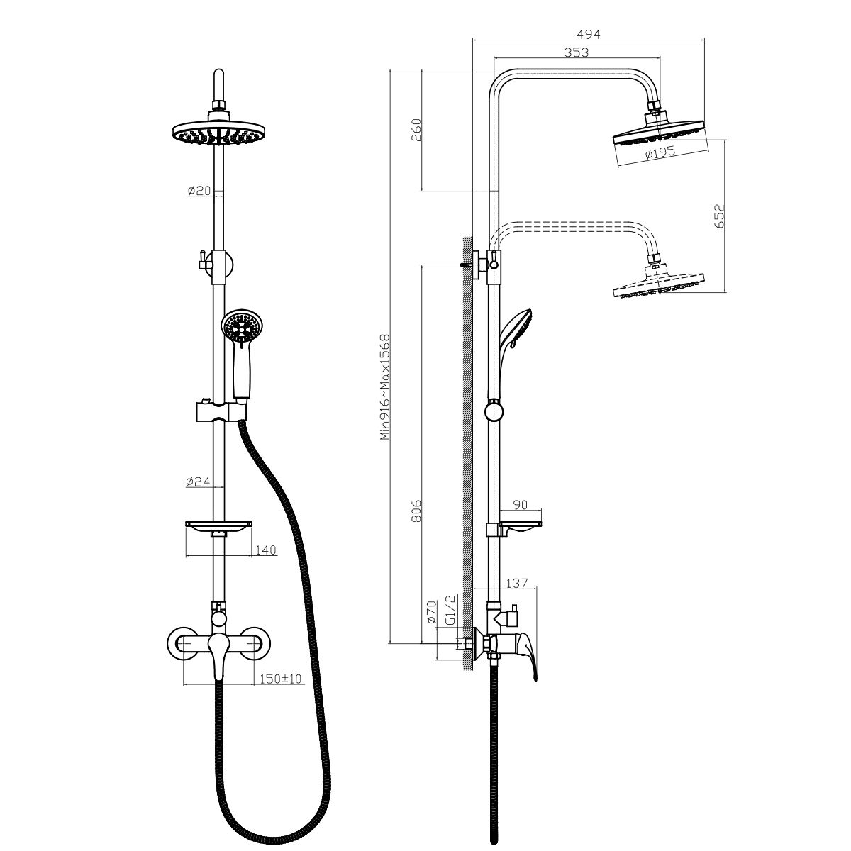 • Размер верхнего душа, см: