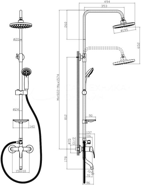 Душевая стойка Rossinka A35-46