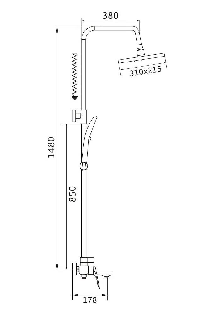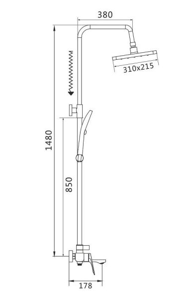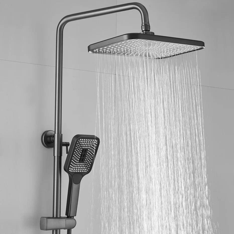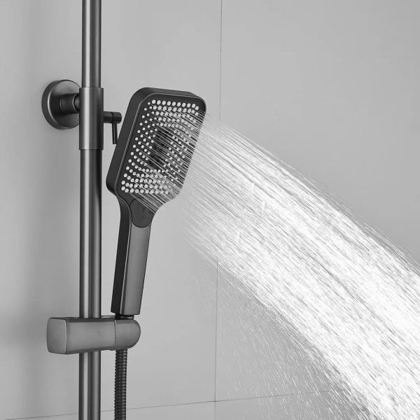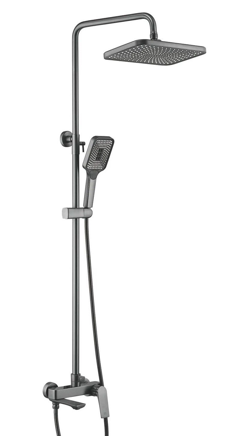 Душевая система Shevanik S9136T, оружейная сталь.Количество режимов струи: 3.Размер верхнего душа: 31x21,5 см.Управление: рычажное.Излив для наполнения ванны: да.