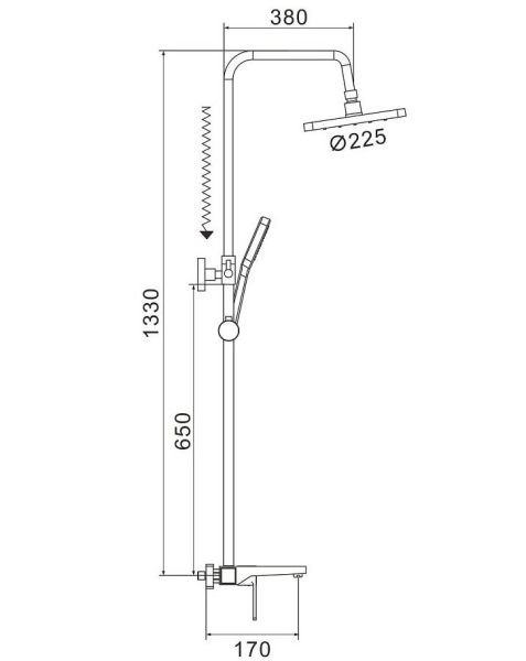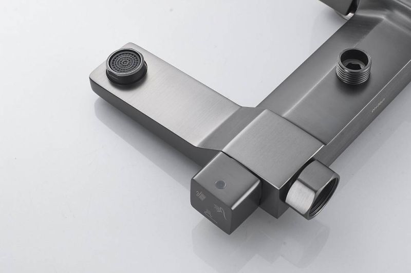 Душевая система Shevanik S9736T, оружейная сталь.Количество режимов струи: 3.Размер верхнего душа: 22,5x22,5 см.Управление: рычажное.Излив для наполнения ванны: да.