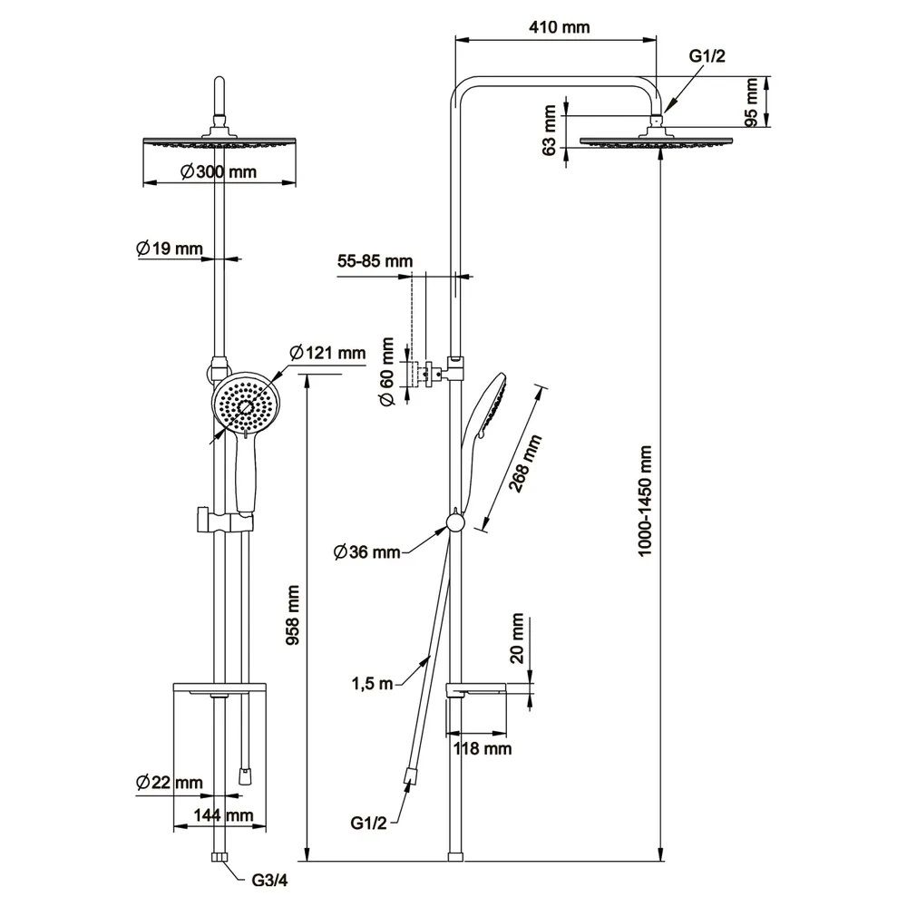 • Размер верхнего душа, см:
