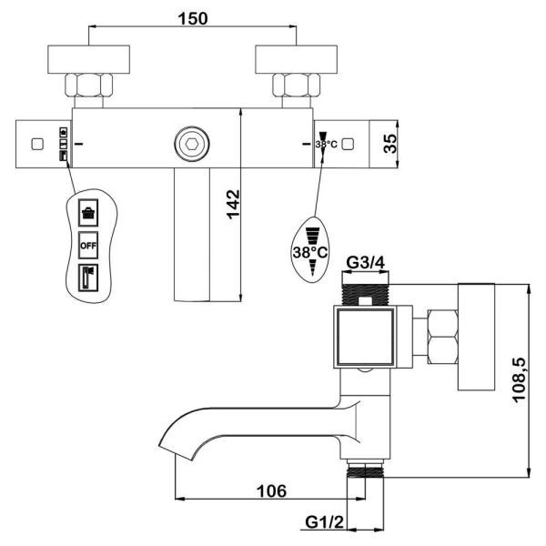 Семейный душ с термостатическим смесителем для ванны Swedbe Нermes 9093B