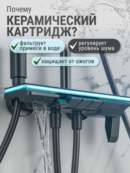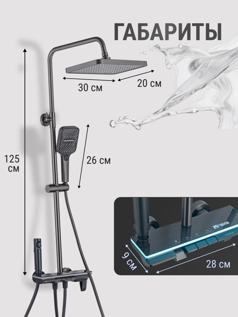 Душевой комплект содержит все необходимое для монтажа. Кроме того, наша душевая стойка с дисплеем и подсветкой имеет простой и быстрый монтаж, благодаря чему вы сможете установить ее самостоятельно без привлечения специалистов. Это позволит сэкономить время и деньги, а также получить удовольствие от процесса создания своего уютного уголка в ванной комнате.