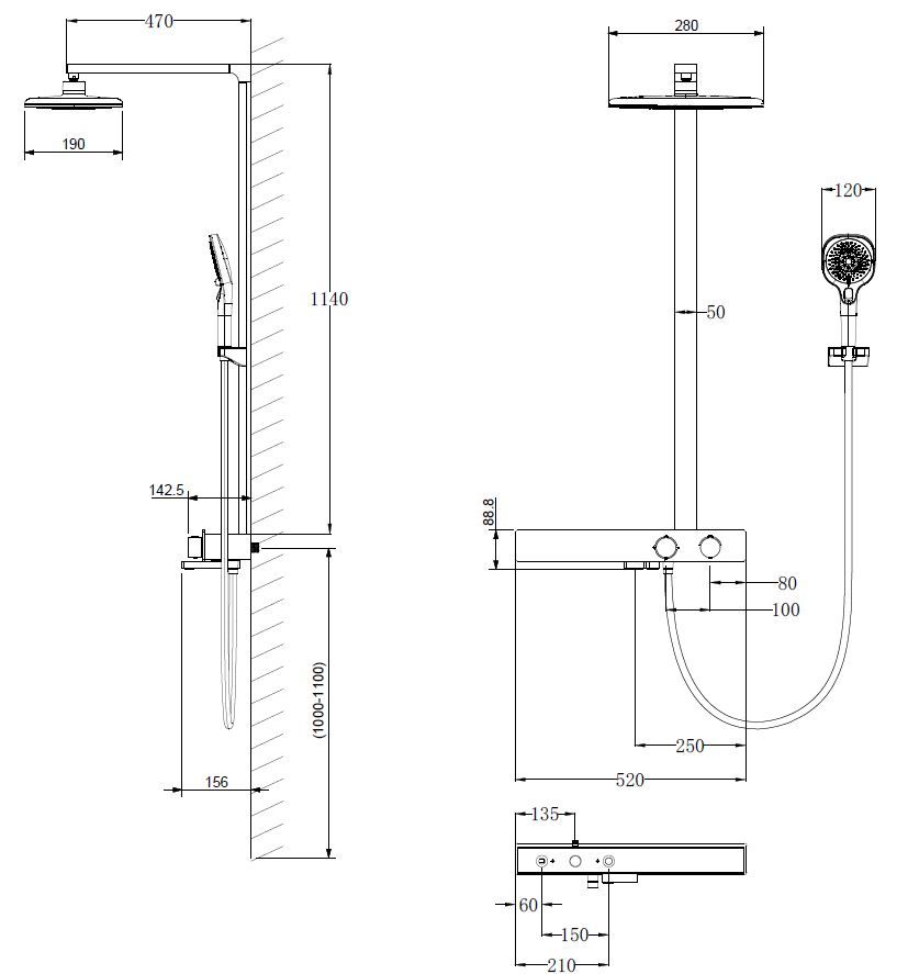 • Размер верхнего душа, мм: 280×190