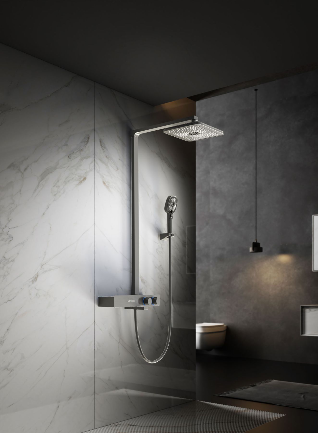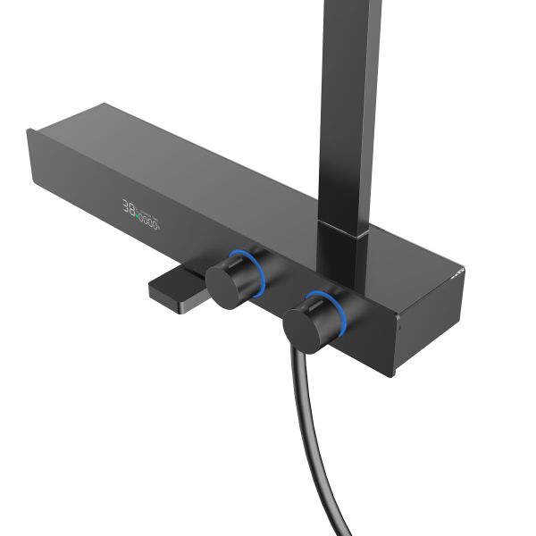 Душевая система Vincea Inspire, термостатическая, с изливом, с подсветкой, цвет вороненая сталь, VSFS-3I13TGM