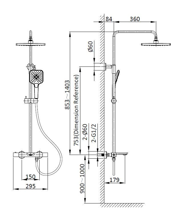 • Размер верхнего душа, см: