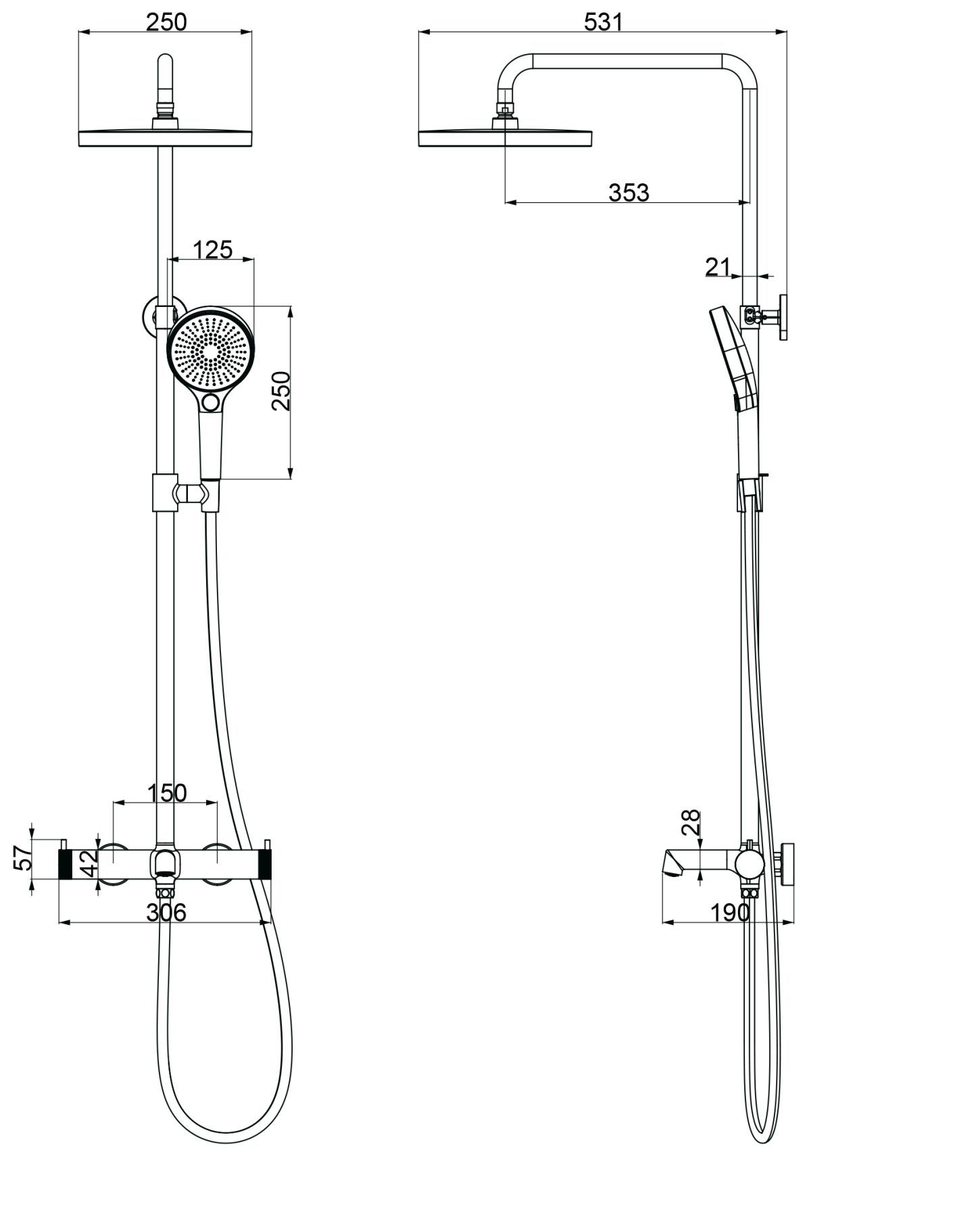 Душевая стойка Vincea Rim VSFS-2RM1GM, вороненая сталь