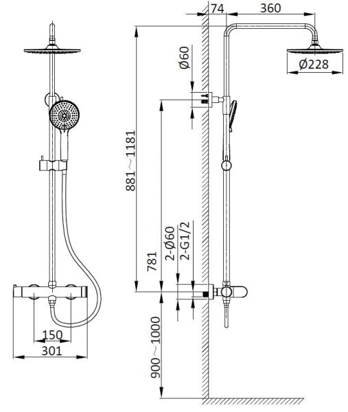 • Размер верхнего душа, см: