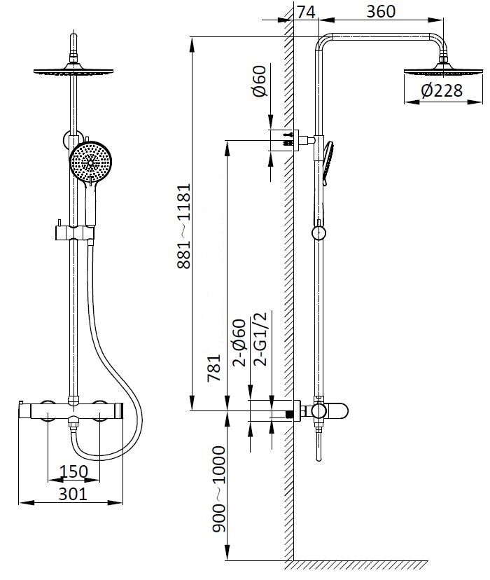 Душевая стойка Vincea Rondo VSFS-1R0MB, черный