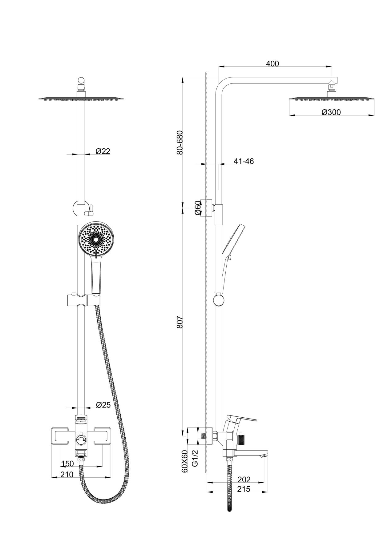 Размер верхнего душа, см:30