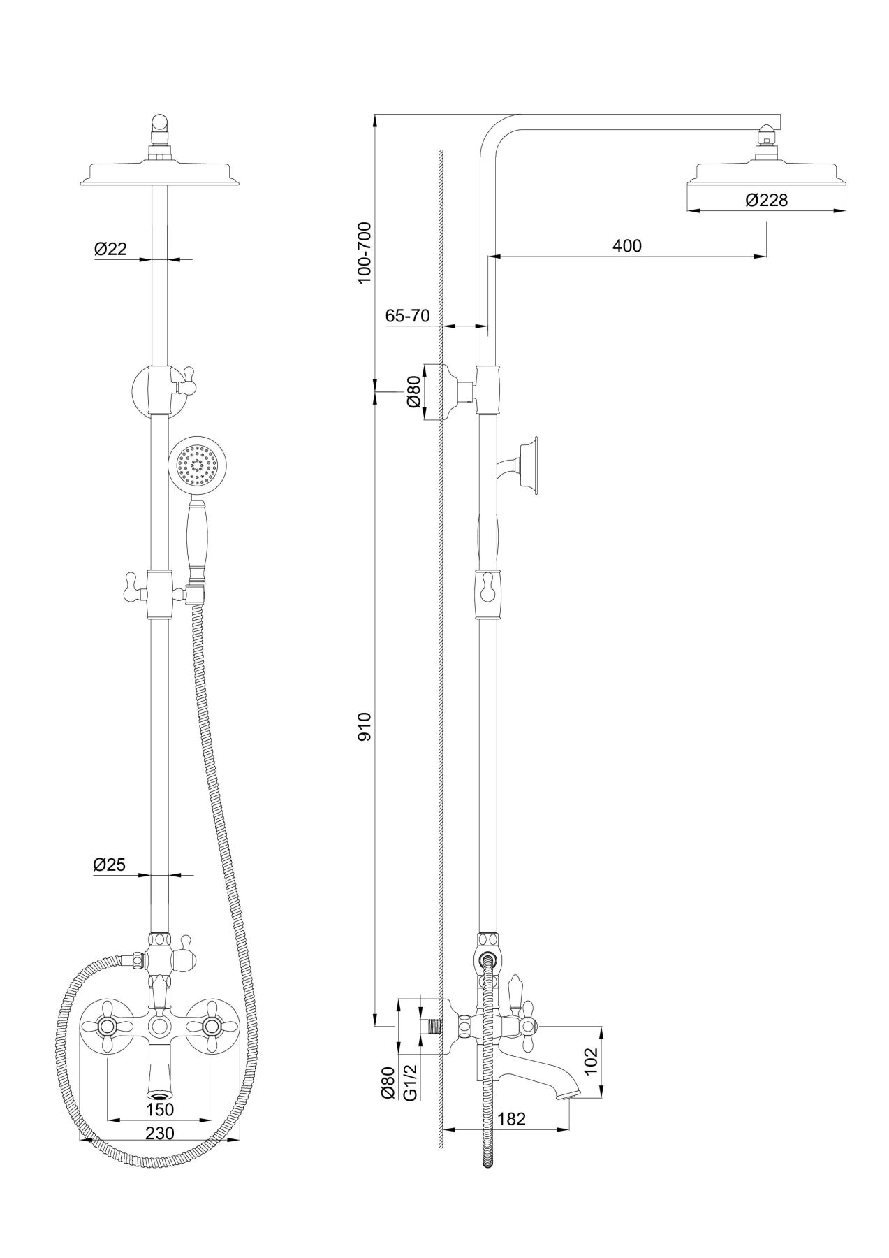 Душевая стойка Wonzon & Woghand Retro WW-88739020-PG глянцевое золото