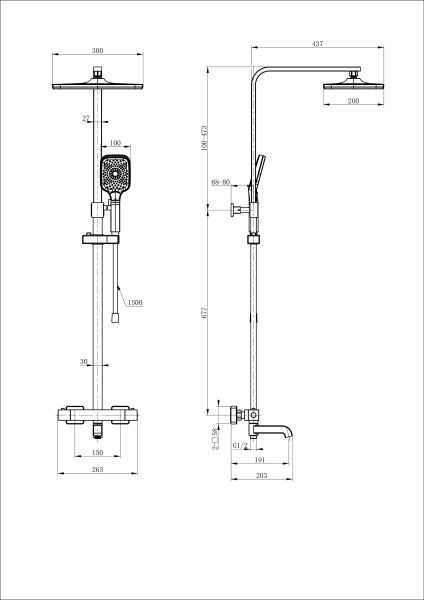 Душевая стойка Wonzon & Woghand Stay 3 WW-B3026-T1-MB с термостатом чёрный матовый
