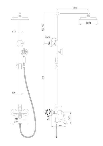 Душевая стойка Wonzon & Woghand Steam WW-88739008-BG брашированное золото