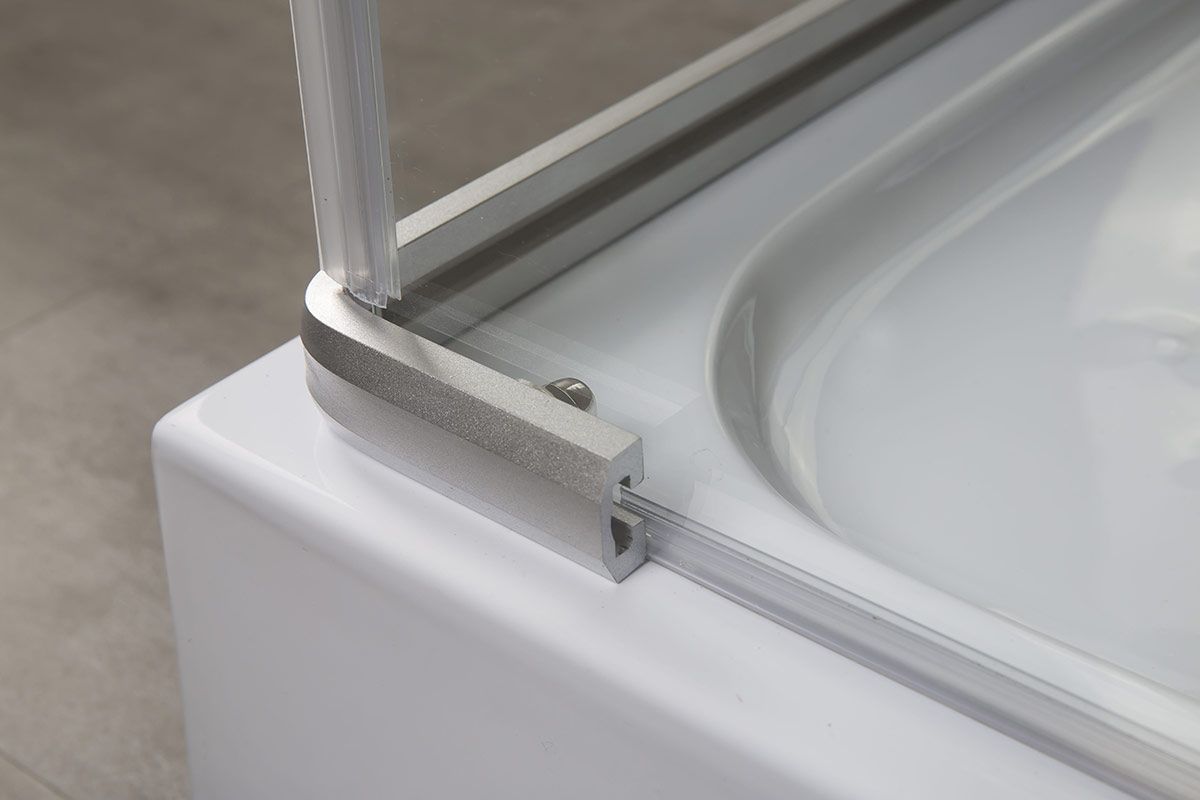 • Дверные ручки выполнены из качественных материалов. Обладают важными качествами: удобством в использовании, элегантностью и долговечностью. • Распашная система открывания дверей. Нижнеопорные петли исключают проседание дверей в процессе эксплуатации. • Алюминиевый профиль обладает высокими антикоррозийными свойствами. Матовая поверхность профиля придает ограждениям привлекательный внешний вид. • Магнитная лента плотно фиксирует стеклянные двери в закрытом положении, не давая попадать воде на пол и стены. • Силиконовый профиль служит для уплотнения зазора между полом и стеклом. ПОДДОН НЕ ВХОДИТ В СТАНДАРТНУЮ КОМПЛЕКТАЦИЮ ИЗДЕЛИЯ И ПРИОБРЕТАЕТСЯ ОТДЕЛЬНО. РАЗМЕР И ФОРМА ПОДДОНА ДОЛЖНЫ СООТВЕТСТВОВАТЬ РАЗМЕРУ И ФОРМЕ ОГРАЖДЕНИЯ.