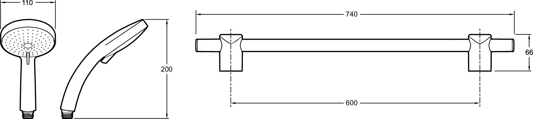 • Размер ручного душа, см: