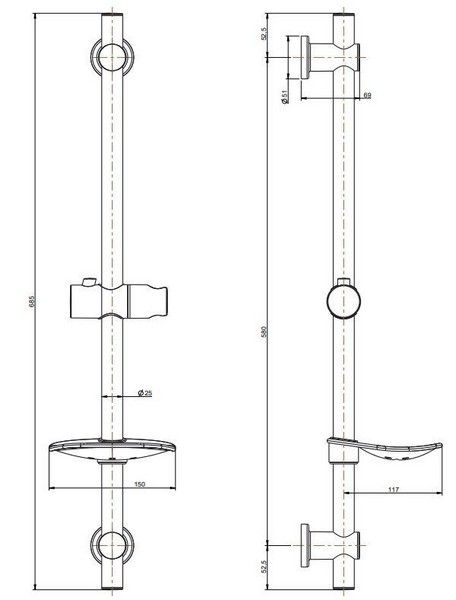 В комплект гарнитура входят хромированная штанга, полочка для мыла и держатель для гибкого душа.
