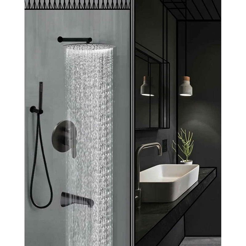 В правильно выполненном дизайне ванной комнаты нет ни одной лишней детали. Душевая система- это не только высококачественные современные технологии, это стильный дизайн и возможность добавить интересный акцент. Например, выбрав элегантный Душевой комплект со смесителем, на 3 режима, Душ для тех, кто ценит каждый момент своей жизни. Комплектация: ? Излив латунь 14 см. ? Верхняя лейка нержавеющая сталь размер 25 см. ? Длинна верхнего кронштейна 40 см. ? Шланг 150 см. ? Лейка ручная нержавеющая сталь ? Встраиваемый смеситель, материал латунь ? Глубина его погружения в стену 8 см.