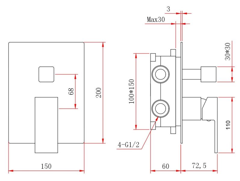Размер верхнего душа, см:25