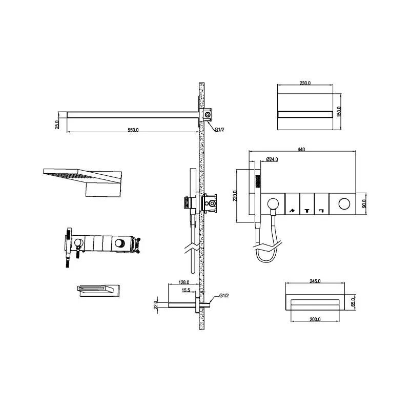 Ультра плоский дизайн, инновационное управление режимами позволит создать идеальный комфорт. Верхний душ размером 550мм*230мм с функцией тропического душа. Форсунки soft-silicone с функцией антикальк и комфортной очисткой. Магнитный держатель лейки Каскадный излив как дополнительная опция. Картридж Sedal, переключатели Neoperl.