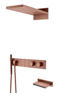 Ультра плоский дизайн, инновационное управление режимами позволит создать идеальный комфорт. Верхний душ размером 550мм*230мм с функцией тропического душа. Форсунки soft-silicone с функцией антикальк и комфортной очисткой. Магнитный держатель лейки Каскадный излив как дополнительная опция. Картридж Sedal, переключатели Neoperl, термостат Vernet (Франция).