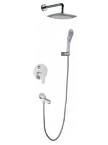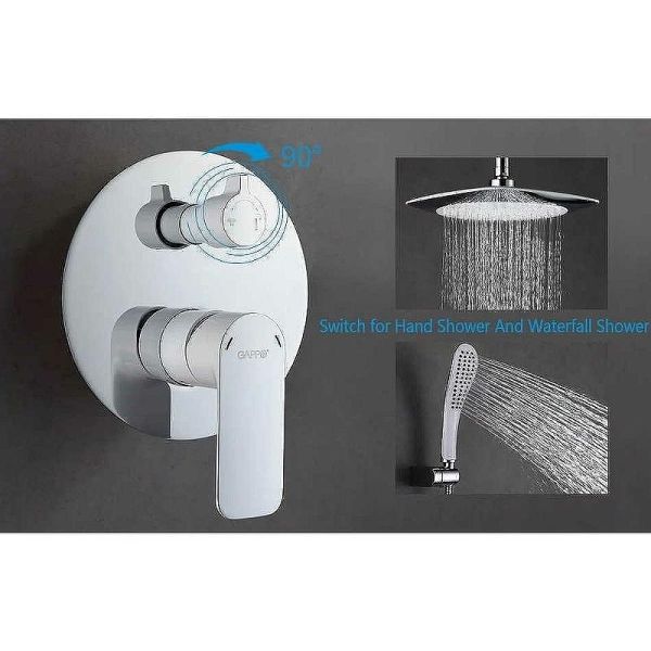 Душевая система скрытого монтажа Gappo Noar G7148-8 выполнена из латуни в белом цвете с хромом, состоит из встроенного смесителя, верхнего тропического душа, поворотного излива для ванны (переключает подачу воды на лейку или верхний душ), ручной лейки и ее держателя, душевого шланга (150 см) и комплекта креплений. Однорычажный смеситель с 3 функциями (душ, лейка, ванна) оснащен керамическим картриджем 35 мм, изготовлен из латуни. Тропический душ с силиконовыми вкладышами легко очищается от известкового налета.